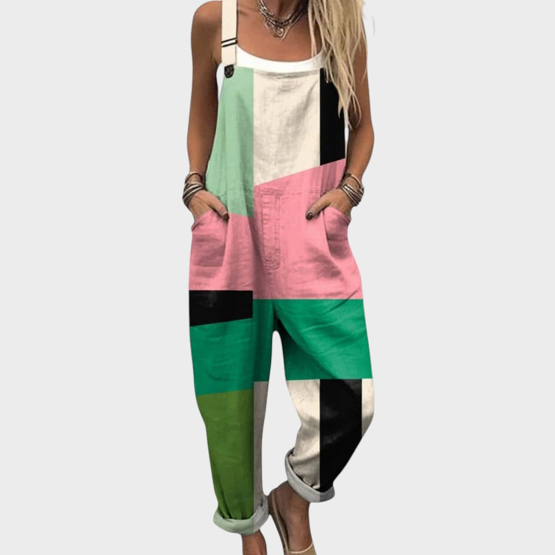Този летен гащеризон съчетава удобство и уникален дизайн в парче облекло, което ще обожавате да носите всеки ден. С широкия си крой, практични джобове и игриви детайли, той е перфектен за разходки, излети или релаксиращи моменти у дома.
