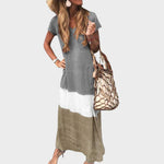 Тази въздушна и удобна макси рокля е перфектна за топлите летни дни и релаксиращи моменти. Със своя лежерен крой осигурява максимален комфорт, докато комбинацията от цветове придава модерен и бохо вид. Идеална е за плажа, разходки из града или летни екскурзии, а лесно се комбинира с сандали, шапка и голяма чанта за перфектен летен стил.