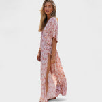 Тази бохо рокля в нежни тонове с елегантен разрез е перфектният избор за летни дни и вечерни излизания. Летящият силует подчертава женствеността, докато разрезът добавя доза съблазнителност и лекота. Идеална за плажа, разходки край морето или специални поводи, когато искате да блеснете.