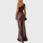 Проектирана да очарова с финес, роклята Луна преосмисля съвременния гламур. Нейният силует с едно рамо, от течен сатен, е перфектен за сватби, партита или специални вечери, на които искате да излъчвате увереност и стил без усилие.
