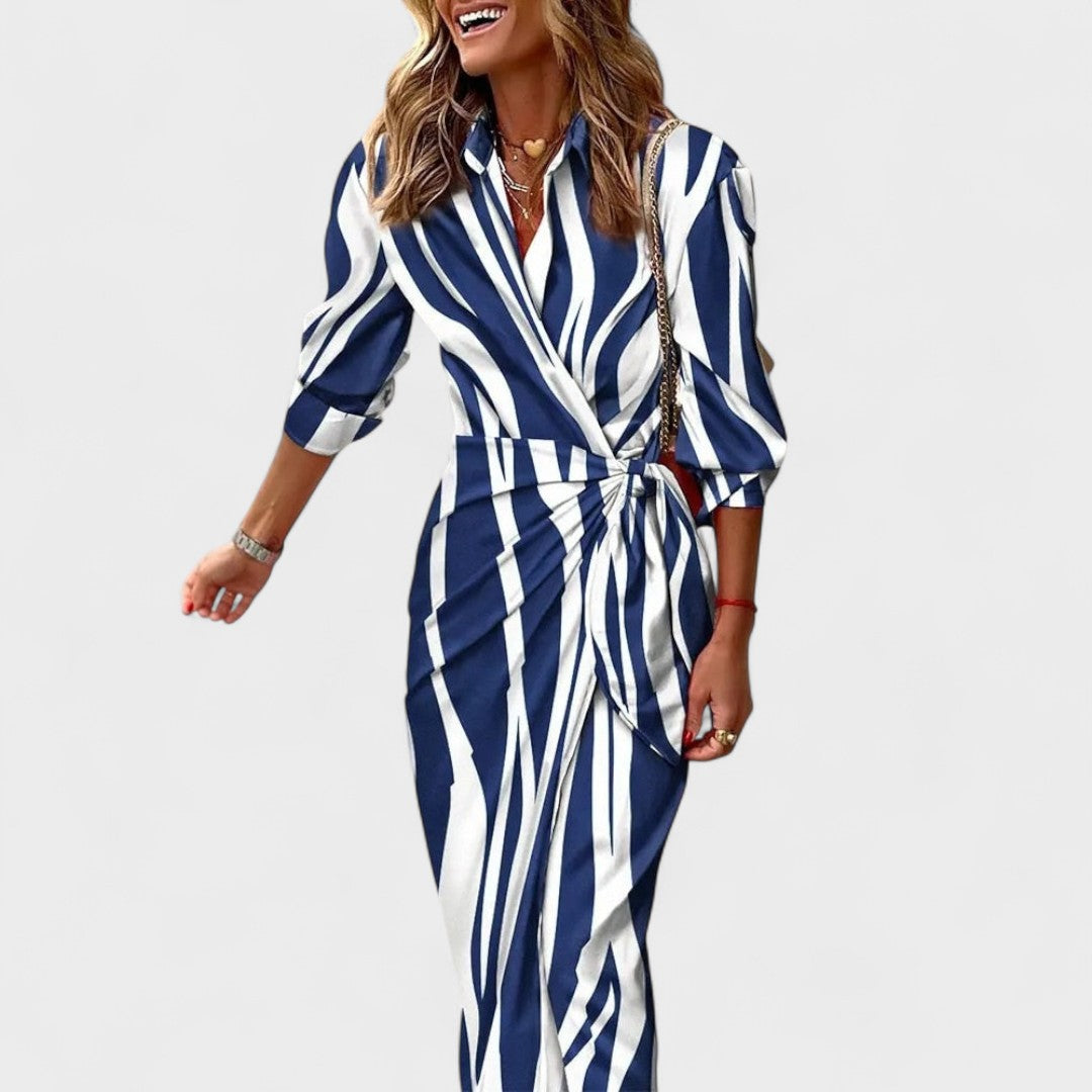 • Ласкав крой: удължава фигурата и подчертава талията без стягане.