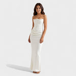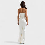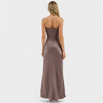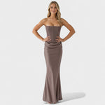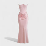Роклята 'Радмила' представлява временно елегантен стил в най-красивия си вариант. Тази рокля, която достига до пода, има корсетен стил без презрамки, изработена от материя, която предоставя перфектна основа, докато артистичният набор в областта на бедрата създава завидни форми. Персонализираният силует преминава в деликатно разширяване на рибешкия опашка от лъскав сатен, което прави всяка стъпка специална.