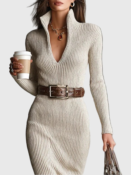 • Елегантен дизайн: Прилепналият силует и полу-високото V-образно деколте прекрасно подчертават женствените форми.