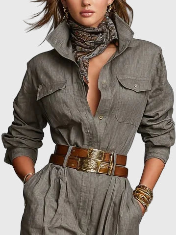✔️ Класическа яка и дълги ръкави – Полирана, изискана визия.