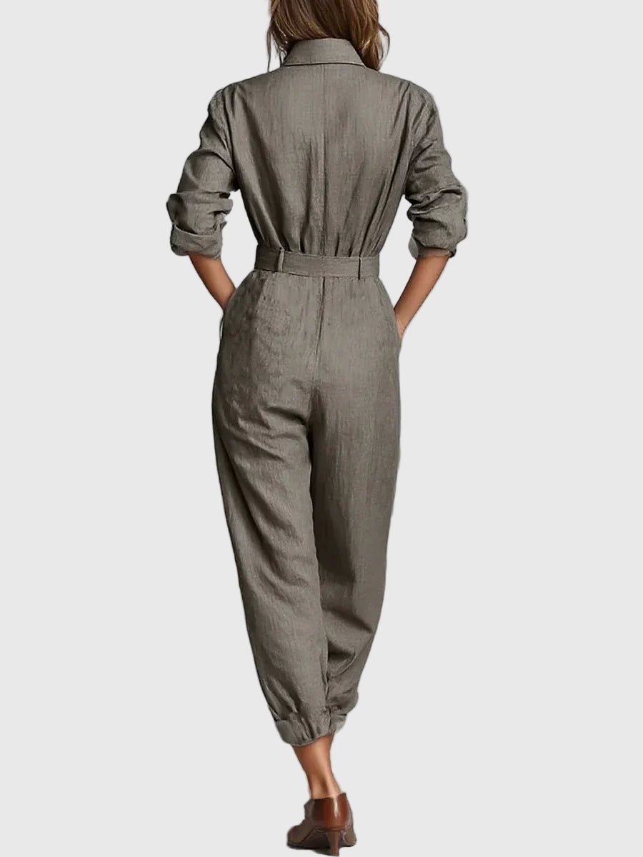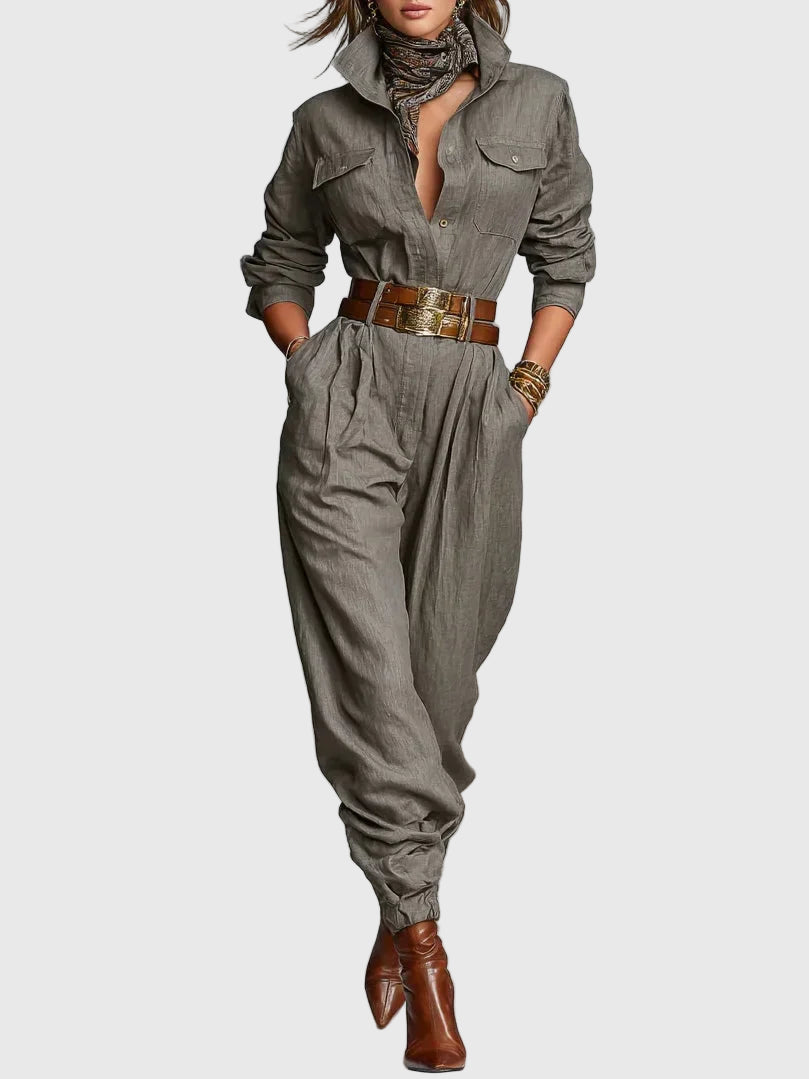 Гащеризонът Меган | Летен-котон съчетава дишаща лекота с вечна елегантност. Проектиран с разкроен, подчертаващ силует и класическа яка, той внася повишена простота във всеки момент — от дневни ангажименти до бранч с приятели. Лек и мек с елегантно падане, той предлага комфорт, който се движи с вас, докато подчертава естествената ви форма. Стилизирайте с сандали или мокасини за шикозна, без усилие елегантност през всички сезони.