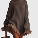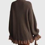 Плътната рокля с волани Нина съчетава топлина, елегантност и женствено очарование. Със своята разкроена, удобна силуета, грациозен висок як и мек волан, тя създава уютен, но изтънчен вид за по-хладни дни. Плетивото е топло, меко, леко еластично и изключително удобно за кожата.
