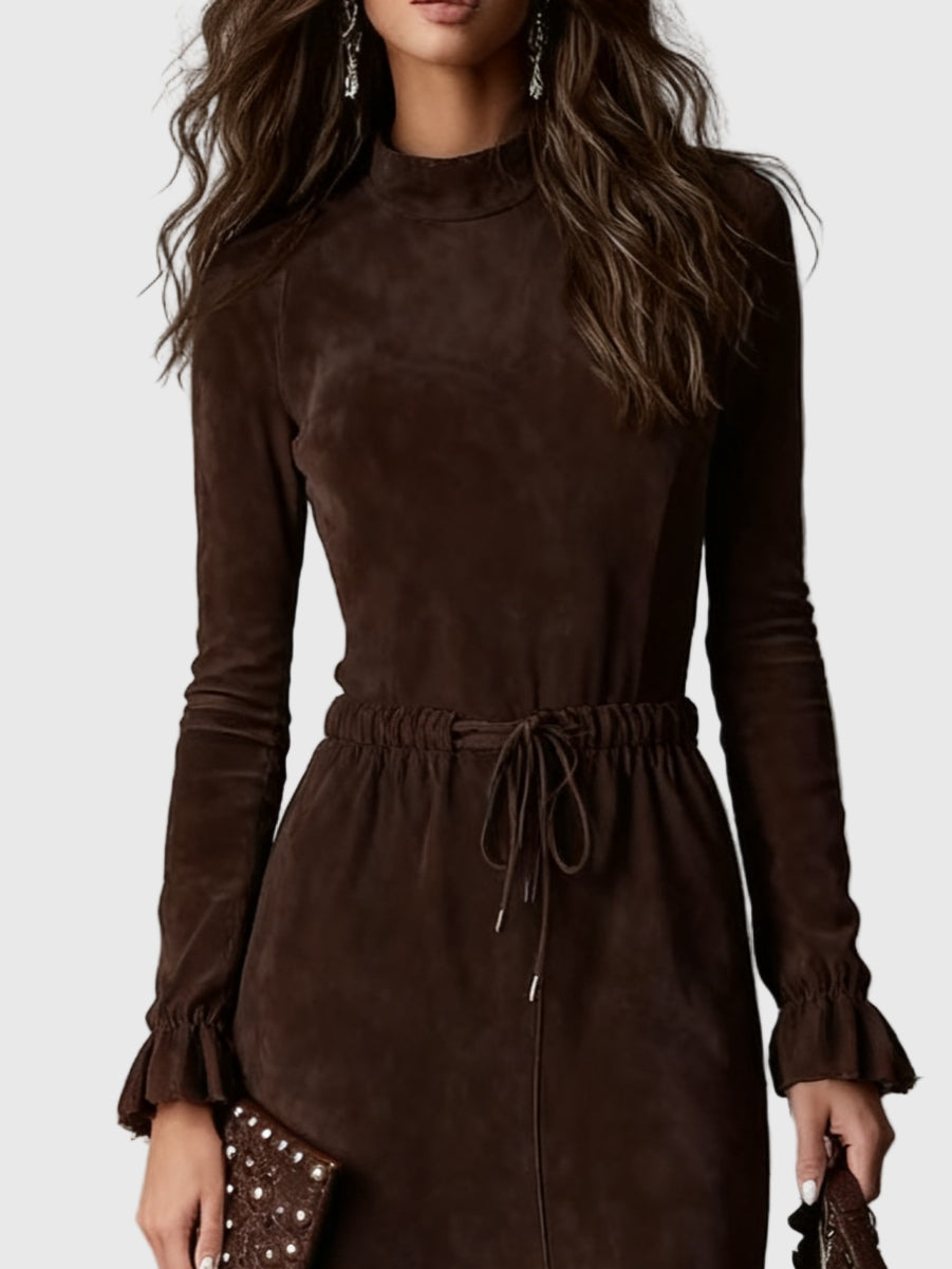 Аделина | Суede Миди Рокля с Връзка на Талията