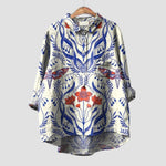 Добавете игриво докосване към стила си с тази тениска в син нюанс, украсена с сладък мотив на куче. Удобният и широк дизайн предлага свобода на движенията, докато класическият яка с копчета добавя деликатен нюанс на елегантност. Идеален вариант за небрежни визии с особен характер.