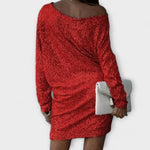 Блестящата рокля за нощта е идеална за тези, които искат да подчертаят модерен вид, изпълнен със стил. С небрежен силует, дълги ръкави и асиметрично деколте, което разкрива едно рамо, този модел съчетава комфорт и сексуалност. Блестящият завършек зашеметяващо улавя светлината, правейки я перфектна за партита, вечери или специални излизания.