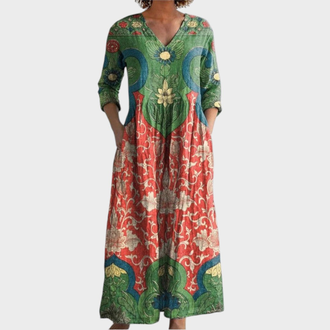 Клара - Дълга рокля с винтидж цветен принт