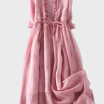 Тази проста и елегантна дълга рокля в нежно зелено оттенък излъчва свежест и естествена елегантност. С лек силует и свободен крой, нежно обвива тялото и предлага уникален комфорт през всеки момент от деня.