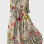 Тази дълга рокля в земни нюанси с цветен десен съчетава класическа елегантност и естествена свежест. Дизайнът нежно обгръща тялото, докато коланът в талията предлага женствена и добре оформена силуета. Рокля, която носи пролет и хармония във всеки ваш вид.