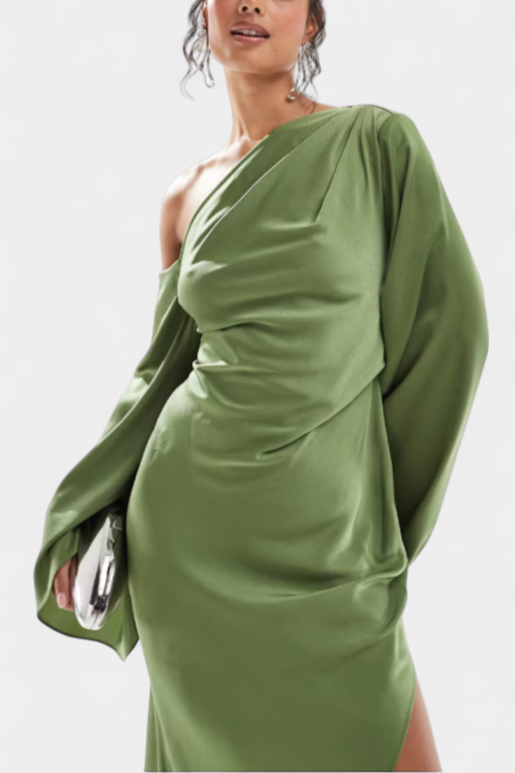 • Деколте с едно рамо, което носи модерна и елегантна нотка