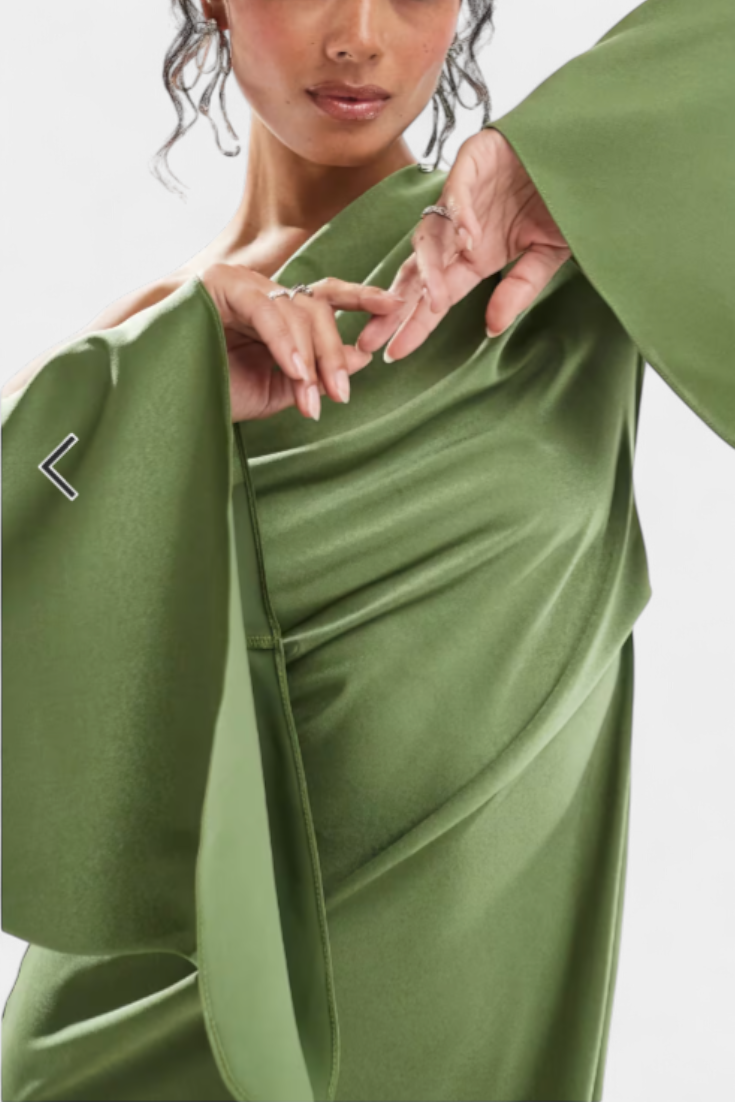 Впечатляваща и изискана, роклята Франка комбинира дизайн с едно рамо с флуидна силуета, която балансира драматичността и елегантността. Нейният асиметричен деколте стилно обрамчва фигурата, докато оформената талия подчертава силуета, а флуидният ръб придава естествено движение. Част, замислена да се откроява с клас в всяка специална повода.