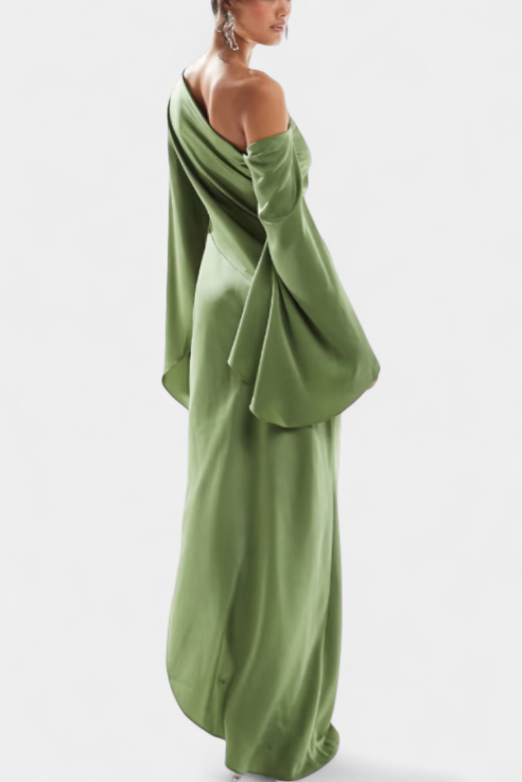 Франка Асиметрична Макси Рокля с Едно Рамо и Оформен Талия