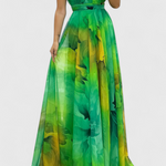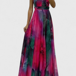 Антония Макси Рокля от Шифон с Цветен Узор и Халтер Яка